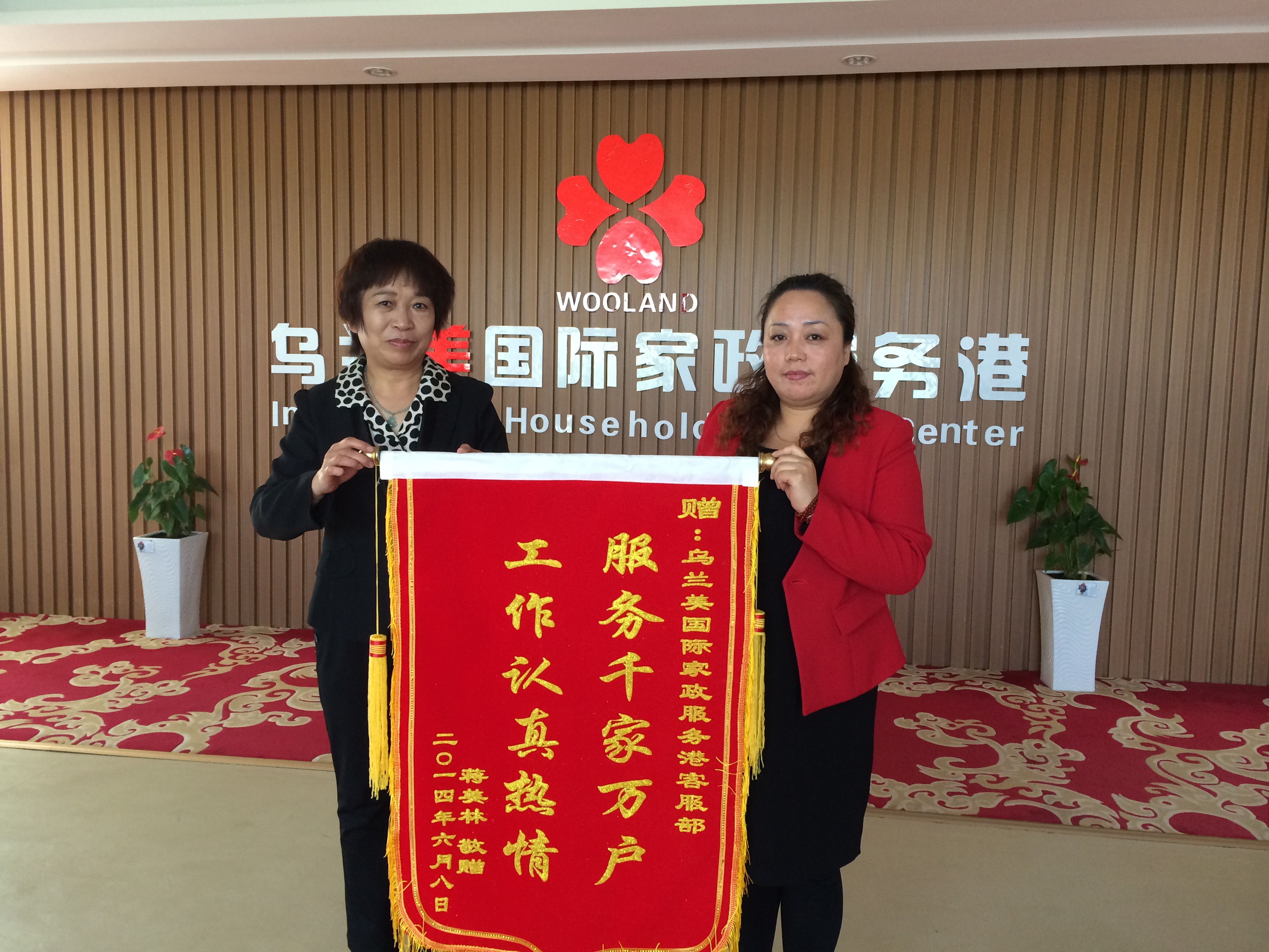 2014年6月10日,烏蘭美健康服務(wù)有限公司又收到了一面錦旗,該錦旗由客戶蔣女士贈(zèng)予烏蘭美客服部,旗面書(shū)寫“服務(wù)千家萬(wàn)戶,工作認(rèn)真熱情”,對(duì)客服部的工作給予了極大肯定。