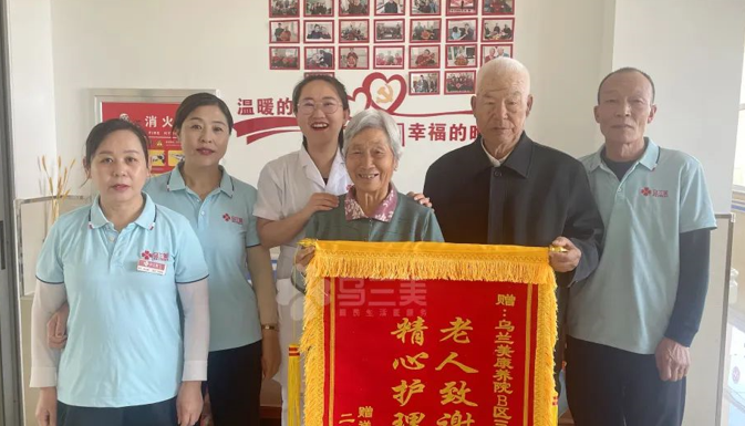 2022年4月11日上午,烏蘭美康養(yǎng)院B區(qū)三樓全體工作人員收到入住長者王興禮爺爺、于守珍奶奶夫妻倆的一面印有“老人致謝送錦旗,精心護(hù)理暖人心”的錦旗,以表達(dá)對全體工作人員的感激之情。